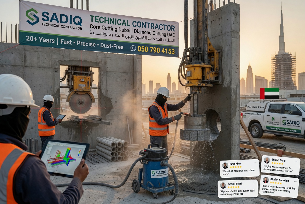 Are you looking for reliable core cutting in Dubai or professional diamond core cutting UAE for your construction, renovation, or demolition project? At Sadiq Technical Contractor, we deliver fast, precise, and dust-controlled cutting solutions across Dubai and the entire UAE.